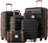 LONG VACATION Luggage Sets 4 Piece Luggage with ABS+PC Hardshell, Spinner Wheels & YKK Zipper TSA Lock for Travel Esssentials (Black-Brown, 6 Piece Set)