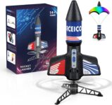 - LED Night Lighting Rocket Launcher Toy: he built-in LED lights allow you to launch the rocket and track its flight path even at night, making it easy to locate the rocket whether it’s in the air or on the ground.